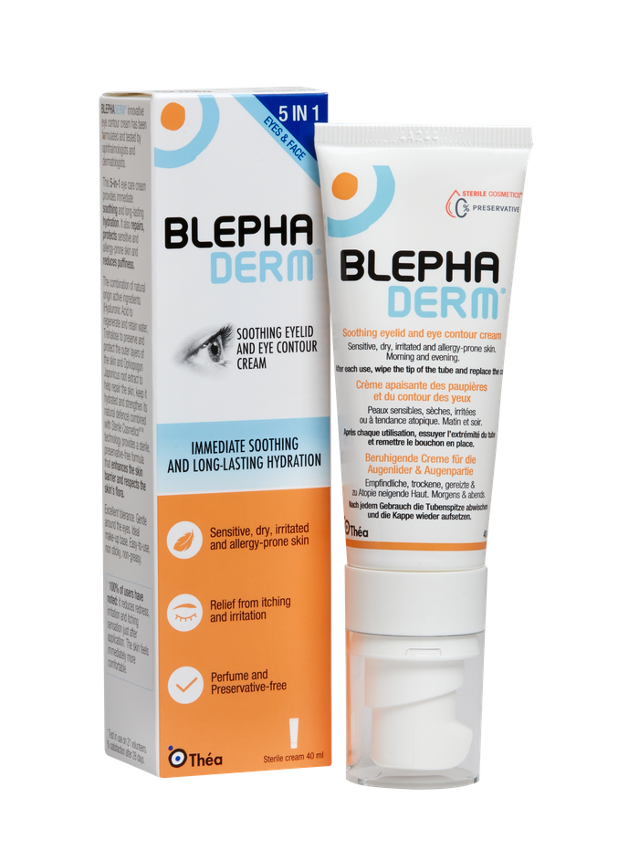 BLEPHADERM® innovative eye contour cream has been formulated and tested by ophthalmologists and dermatologists. This 5-in-1 eye care cream provides immediate soothing and long-lasting hydration. It also repairs, protects sensitive and allergy-prone skin and reduces puffiness.
