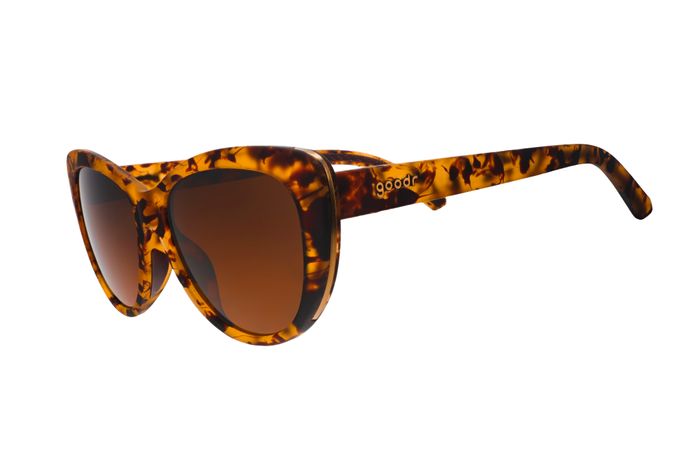 ME-OW!!! Take a walk on the wild side in these ferociously fashionable brown tortoiseshell sunglasses with brown non-reflective lenses and gold accents. WARNING: Wearing may result in an uptick of runway catfights due to extreme style envy.