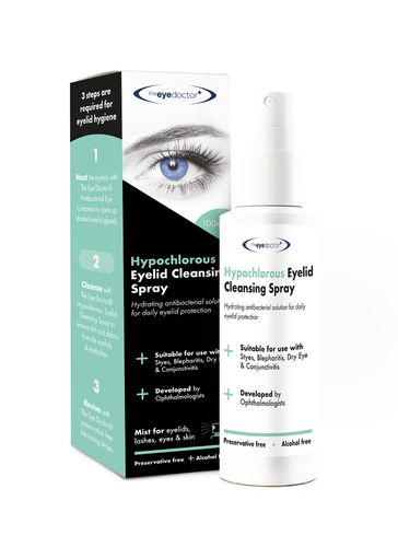 The Eye Doctor Hypochlorous Eyelid Cleansing Spray is a hypoallergenic eye cleansing spray with antibacterial properties, designed to maintain optimal hygiene with a PH that is compatible with the ocu ...