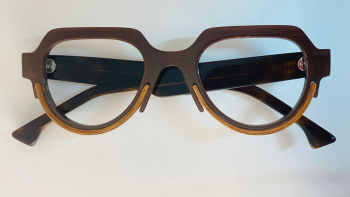 The unique combination of gently curved wood and meticulously cut acetate makes this piece something unique and unprecedented. 100% handmade, the way the wood is attached to the acetate doesn't use screws, just a bamboo dowel, similar to Japanese interlocking furniture. This detail in fine wood doesn't interfere with functionality or adjustments that need to be made to the piece.
