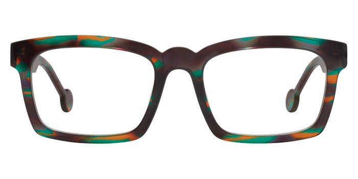OSWALD by l.a.Eyeworks re-imagines the gentlemanly rectangle by adding a soft rise to the browline and lightlly inflating the proportions for a look that is substantial but not overwhelming. Superbly crafted in a handsome suite of five unique patterned acetates, OSWALD complements many styling modes -- from weekday business suiting to more casual weekend wear -- and is intended to inspire the wearer with a feeling that their frame is distinctive and one-of-a-kind.